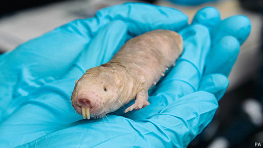 Rata Topo DesnudaLos investigadores piensan que la sustancia es la responsable de que este roedor tenga su distintiva "holgada" piel elástica, necesaria para estrujarse por los túneles subterráneos.