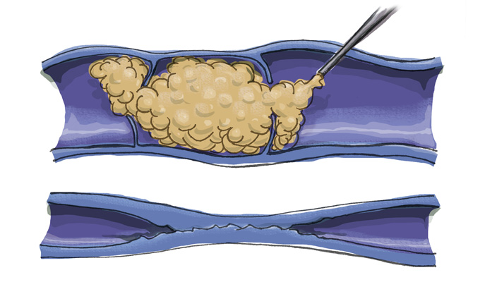 Una vez inyectada dentro de la vena, la espuma desplaza la sangre y entra en contacto directo y homogéneo con las paredes del vaso, consiguiendo mejores y más rápidos resultados que cuando se utiliza la solución esclerosante original.