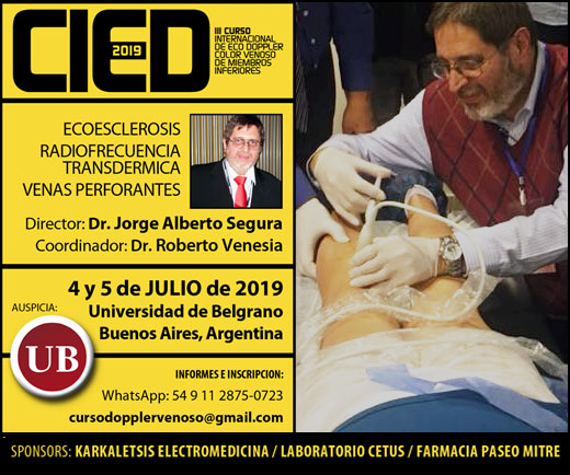 Con el auspicio de la Universidad de Belgrano y dirigido por el Dr. Jorge Alberto Segura, la tercera edición del Curso Internacional de Eco Doppler color venoso de miembros inferiores se realizará los días 4 y 5 de julio próximos en Buenos Aires. Programa preliminar.